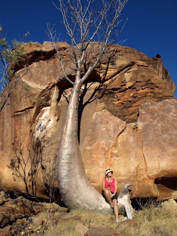 Bev and an odd-shaped bottle tree in Western Australia. Archives September 2012. Scroll down to Katherine to Kununurra.