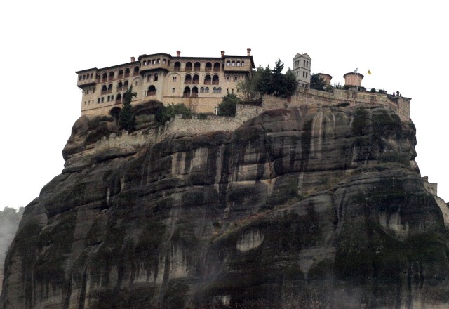 Monks established themselves in caves at the base of the pinnacles near Kalambaka and Kastraki back in the 9th century. However by the end of the 12th century Turkish raiders were harassing them so they headed further up towards the heavens and built there. Go to Archives October 2012. Day 1 Meteora Greece and while you are there go to Archives November 2012.