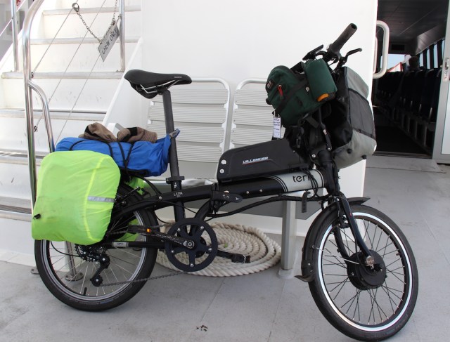 Travelling light and with a bike fits well with our eco friendly philosophy. In 2017 we had electric motors fitted so in effect we are now travelling with ebikes. This does not mean we have it easy, we still have to pedal.