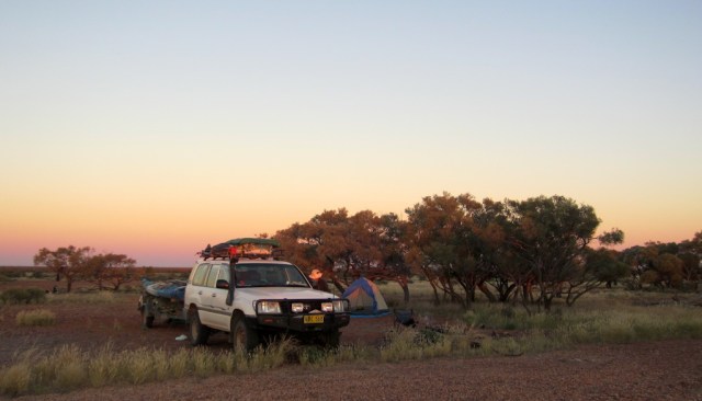 In such a simple camp it is easy to be at one with the sunset and sunrise across the plain. Archives July 2012. Scroll down to Day 11 North of Boulia to northwest of Mt Isa.
