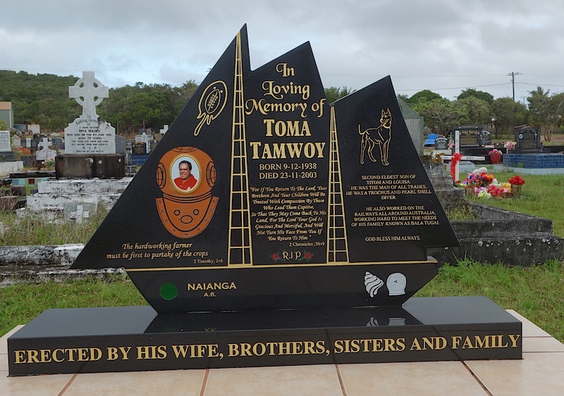 Lugger headstone. This headstone stood approximately one and a half metres high and was made from granite.