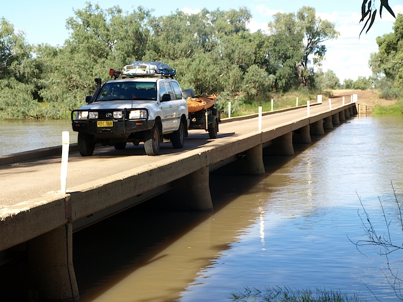 Tonight we are happily camped on the banks of Cooper’s Creek not far upstream from the bridge. Usually there are a lot of grey nomads camped here but because the water is so high there are fewer campsites and the fishing is not so good.