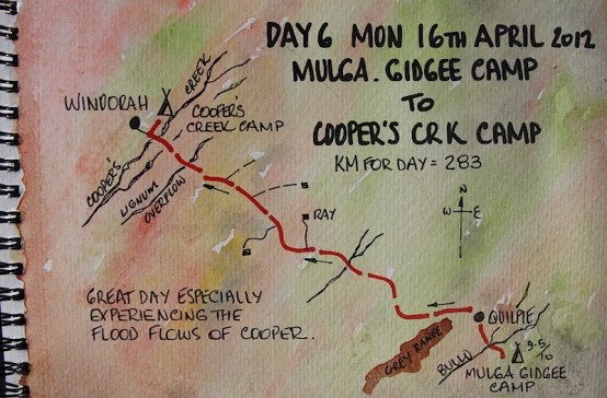 Cooper’s Creek catchment takes up one quarter of the Lake Eyre Basin and storm rains falling at the most distant point in the basin (up around Longreach way) take from nine to ten months to get to Lake Eyre. I have often thought a kayak trip down Cooper’s Creek to Lake Eyre would be a real adventure, however I think I’m a bit old for it now. Maybe in the next life if there is one.