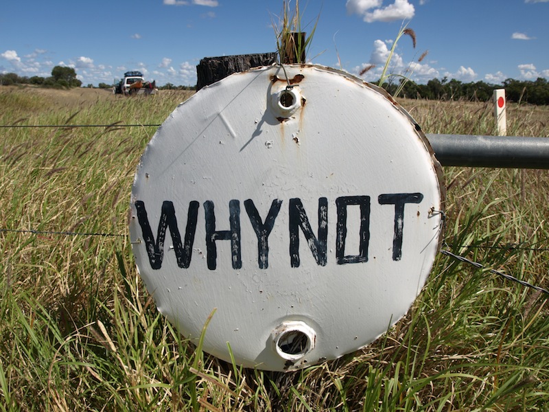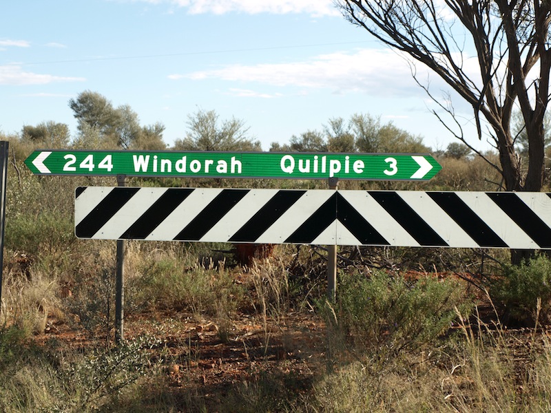 There is a lot of mulga and open grassland between Quilpie and Cooper’s Creek and that is what attracted pioneer graziers such as the Tullys, Costelloes and the Duracks of ‘Kings in Grass Castles’ fame. Patrick Durack was the main player. He left Ireland for Australia in 1853 and ended up founding a cattle empire across great stretches of Australia’s north. On one of his expeditions to Cooper’s Creek country he had a horse named Whynot but it died in a creek just west of Quilpie so the creek took the name of the horse. Later when the land around the creek was settled the people who took up the land called their property Whynot. I’m telling you this just in case you travel the road from Quilpie to Cooper’s Creek, see the sign and wonder.