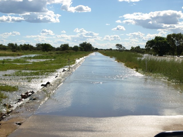 During our Backtrack coach touring days to Birdsville and beyond we saw the country to the west of Quilpie in deepest drought and in times of plenty but nothing compares to what we experienced today. Grasses on the plains were belly high on cattle and growing right up to the edge of the road. In places it was even sprouting out of the bitumen. Waterways along the way were overflowing. Not having seen the area like this in the years we travelled through, it certainly had a WOW factor!