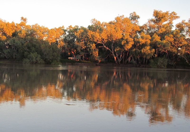 The waterhole here is about nineteen kilometres long so there is plenty of scope for kayaking and fishing. Bev and I kayaked here after floods one year and experienced a bird feeding frenzy. Cormorants would dive down and grab a fish in its beak and when it broke the surface a pelican would grab the cormorant by the neck, crack it and swallow the fish. There were dead cormorants floating everywhere. I thought pelicans were peaceful creatures.