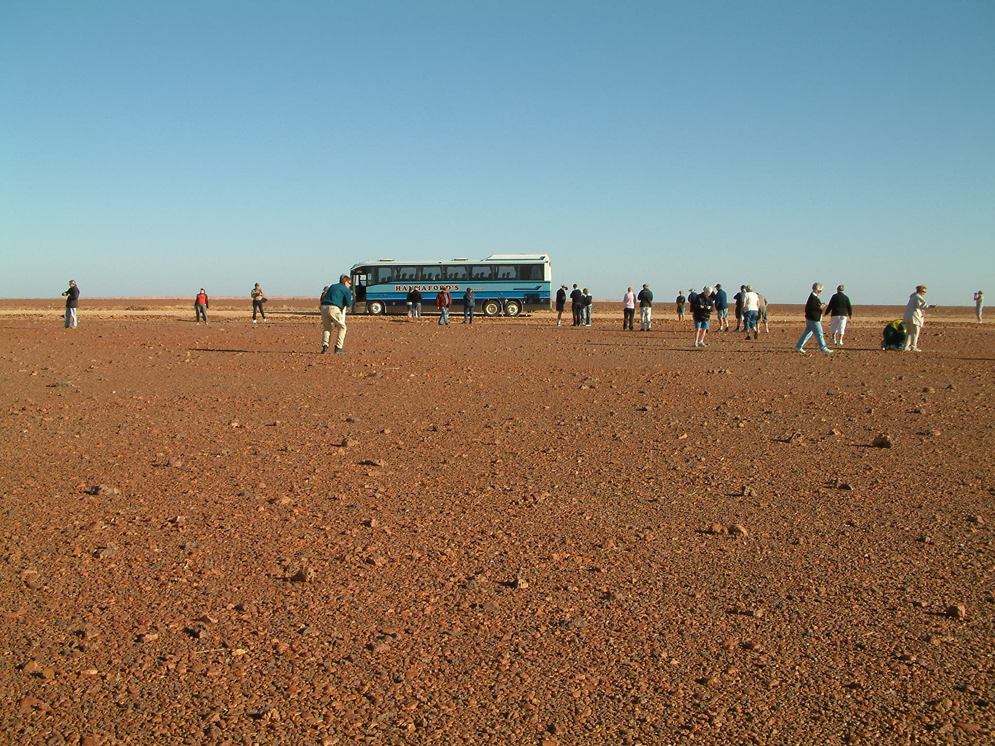 It has always fascinated me as to how stony desert pavements like this evolved. If you imagine the surface here is metres higher, the pavement stones would be scattered throughout the profile. Over time the sand and fines are blown away leaving the stones behind and they eventually touch each other presenting a surface impervious to any further erosion