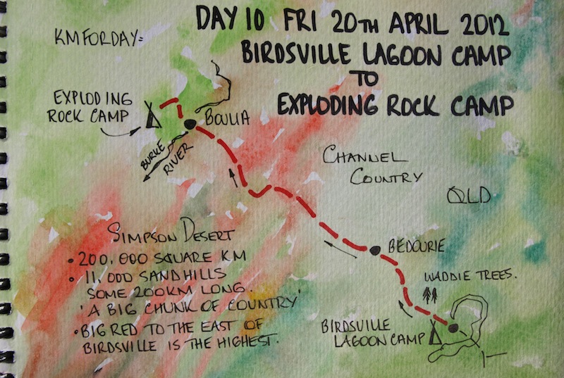 This morning we awoke to screeching corellas flocking onto the lagoon and the howl of a distant dingo. For me there are no other sounds synonymous with the outback. After the woop woop alarm at the Cooper’s Creek camp I am becoming more tuned to the early morning sounds. It will be interesting to note the dawn sounds as our odyssey progresses.