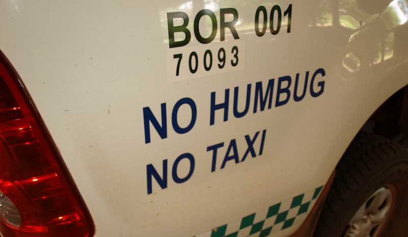 The sign NO HUMBUG NO TAXI is suggesting the night patrol has other business to attend to. Humbug is a word used frequently in the top end and it refers to persistent annoyances. The term humbug was first described in 1751 as student slang but there are many other suggested origins.