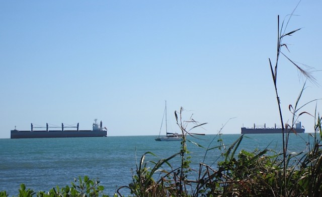Two bulk carriers waiting to load manganese