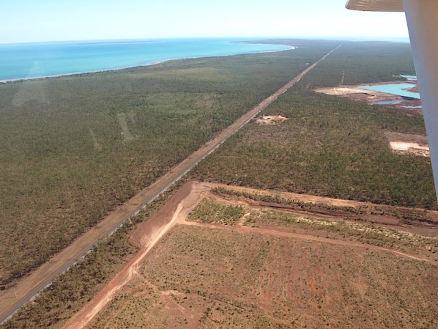 This highway links Angurugu Community and the ore processing plant with Alyangula township and the loading facility on the distant horizon.
