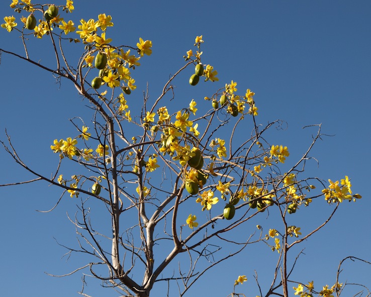 I reckon nature has designed the kapok to flower in winter when the trees have no leaves to make it easy for insects and birds to find the flower.