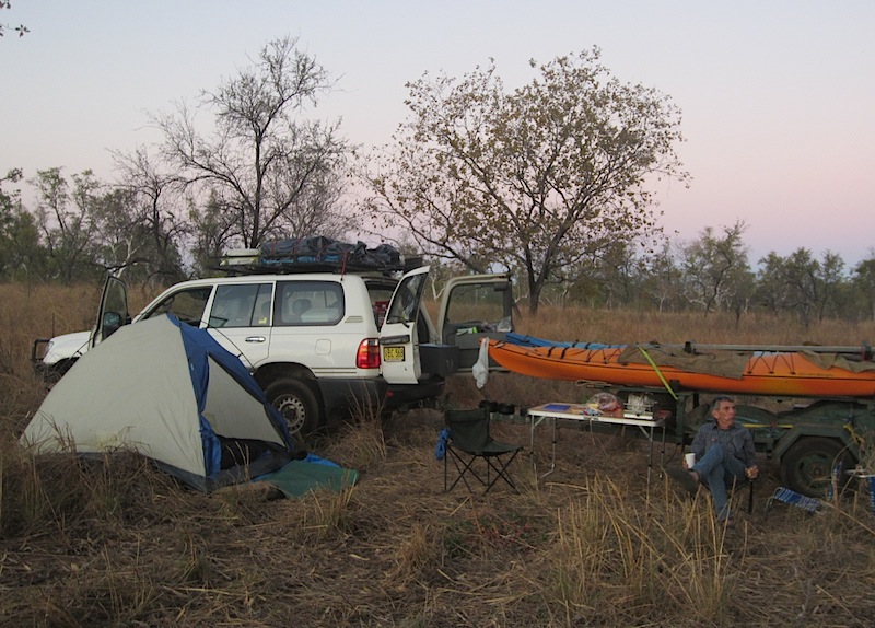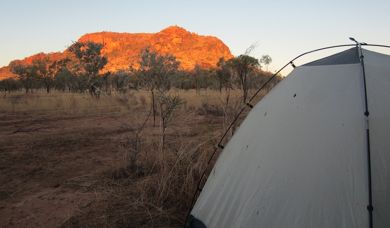 A good night all round. Bev disappeared into the tent early. Because we are in dry grass we thought it best to erect the creature-proof dome for protection from any crawlies.