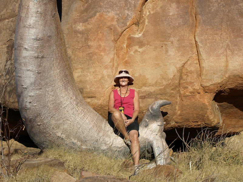 Today boab trees began to appear. We managed to find an isolated one to photograph. Along the road verges today we found a number of plants we were familiar with, the kapok bush, fruit salad plant, Bishop’s crown and the cockroach bush. We get a certain sense of achievement from the fact that we can identify plants, trees and birds as we travel. It makes me wonder what people who are not interested in natural history achieve out of travel.