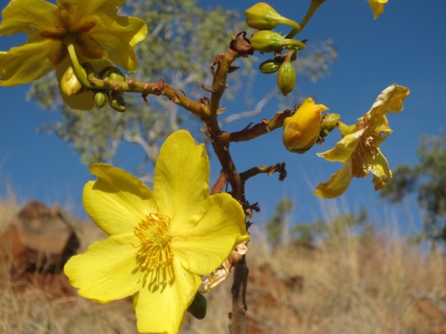 The scenery for first hundred kilometres after leaving Katherine in the direction of Kununurra is nothing to rave about, dry Savannah country and most of it burnt bare. The only highlight at this time of the year is the flowering Kapok tree. Amazingly it loses its leaves in the dry (winter) but it flowers in winter, as does the Kurrajong in this country.