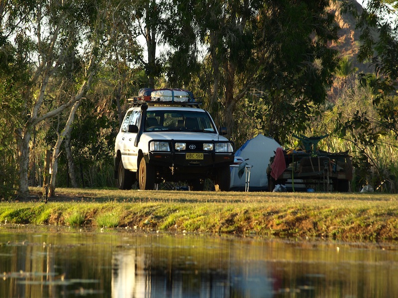 Sometimes we have no alternative but to stay in a caravan park in a town because there are certain domestics to be attended to. The park we chose is on the edge of the Lily Lagoon an artificial lagoon created by the backup of water behind a diversion dam on the Ord River nearby.