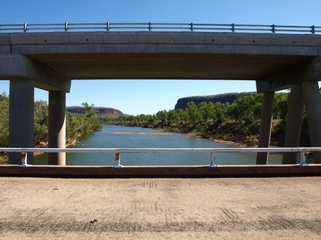Our second stop today was at the Victoria River Roadhouse. Not for vittles but to walk across the disused low-level bridge and the new multi million dollar replacement. The last time I was in this part of the world was when Ian and I were returning home from our overland journey from Perth to London and working in the Pilbara region of WA. I can’t remember going over the old bridge but I guess we did.