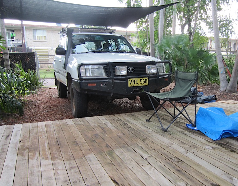 This afternoon back in Darwin I reactivated the Landcruiser and repacked it for the jaunt to Perth. We have about forty days to get to Perth before flying to Thailand. Tonight we are camped on the deck at Steve’s place in Darwin.