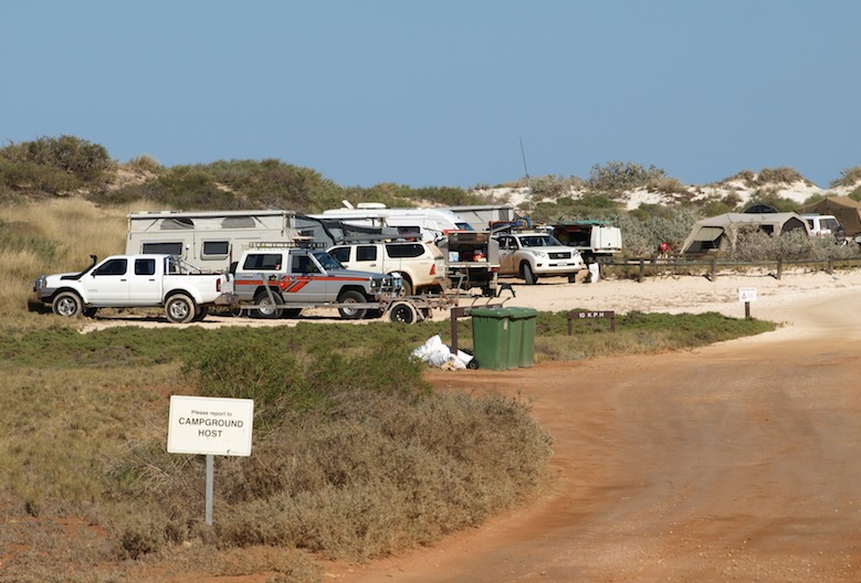 Over lunch we planned our next move which meant making phone calls to the Onslow and Exmouth tourist info centres. ‘I want a tent site by the sea, with no caravans and generators nearby. Can you suggest anywhere we can camp?’ Not possible was their reply. I called a couple of private camping areas on the coast and was advised that they can find a spot but we have to have a chemical toilet. I said I wasn’t a caravanner, I simply wanted a tent site and was prepared to take my crap out when I leave. But that wasn’t acceptable. We could hire one for $15-00 a day. This story was repeated a number of times so I rang the national park office and it was the same story except the girl gave me her supervisor’s number to make a complaint. I rang the number and, you guessed it, a recorded message!