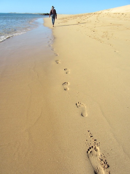 We left Exmouth just before lunch and not far out of town there was a young bloke walking south with a small backpack and swag. He wasn’t actually thumbing a lift. It seemed he didn’t care if he got a lift or not.
