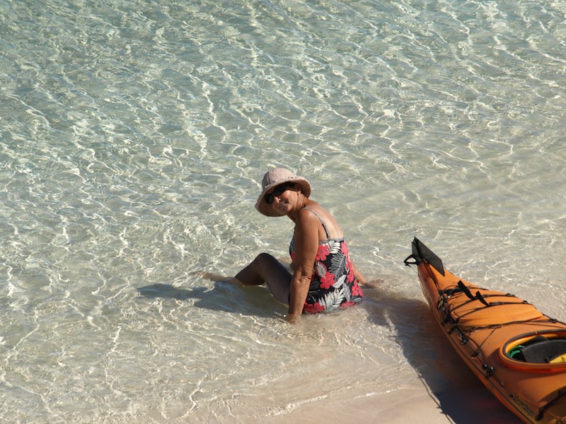 Made an effort to get onto the water earlier today. We launched from a protected little cove and paddled south out into deep water over coral beds.  I did a depth sounding with the paddle expecting the water to be around a half a metre deep but it was well over two metres. The water is so clear.