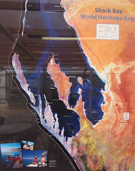 The countryside around Shark Bay is not startling, mainly because there are no trees. The shrubs, many of which are in flower, have a charm but I need Eucs. around me. First stop today was to go into the stromatolites again. The reason for the second visit was to photograph them at low tide without waves breaking over them as was the case the first time. There is something very magical about those living rocks; you have to have seen them to understand what I mean. Bev and I both agree that seeing those ancient creatures could well be the highlight of our Darwin to Perth journey.