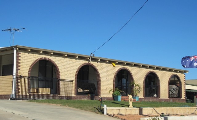 Around 5-00pm we were getting desperate for a campsite. I absolutely refused to spend the night in a caravan park. By the time we hit the national park boundary we had run out of options as the dreaded NO CAMPING signs began to appear. There was a roadside sign advertising a home farm stay, prior bookings essential. The sign detailed a phone number and Bev tried to ring but there was no service. The sign also said call on UHF channel 16; I called a couple of times and got no reply. So it was into Kalbarri town where we had fish and chips and Bev bought a bottle of wine.