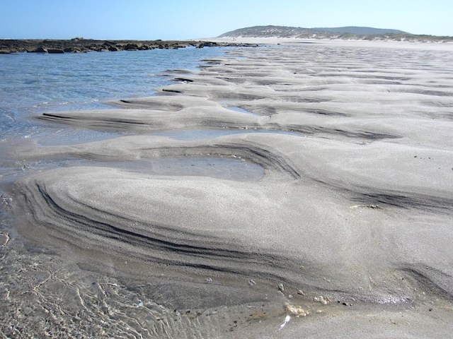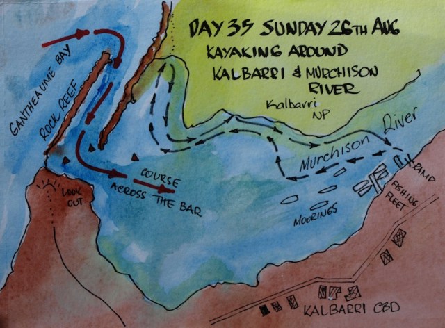 Windy and cold night but we did OK and slept well. This morning we paddled out to where the Murchison River runs into the ocean. We thought we might have found quiet water out of the wind behind a protective reef but, not so. It was blowing a gale and we were soon very wet. Turning we paddled back up river and found a spot on the lee side of a casuarina clump and dried out.