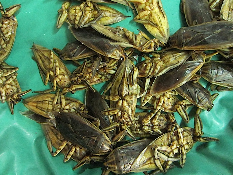 Sirilug assured me these were not cockroaches. These beasts are cooked, dried and ground to a powder, which is added to sauces to flavour Thai meals. They were about 75mm long.