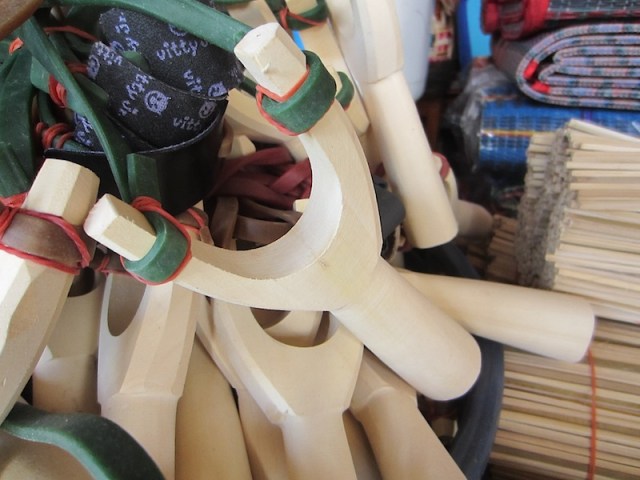 In the good old days every kid in the Sydney suburb where I lived had a shanghai. We made them from fencing wire and heavy-duty elastic bands. I always remember being shocked as to how powerful they were when one day I used a small steel ball (from a ball race) as a projectile and put it through a beer bottle. It didn’t shatter the bottle, it punched a perfect round hole through one side. Shanghais in Australia are now a prohibited weapon.
