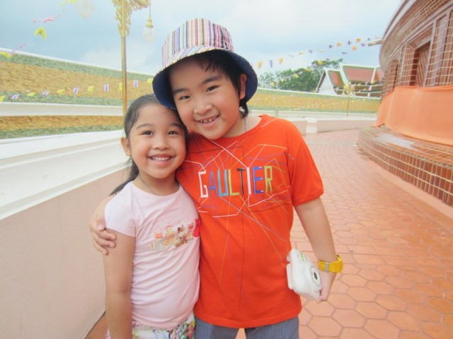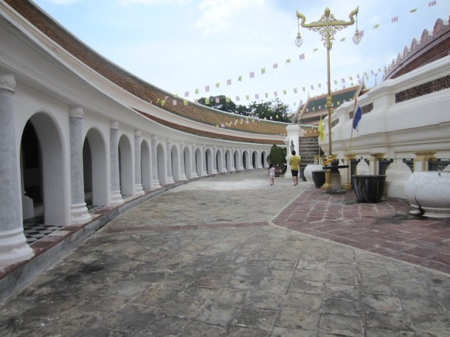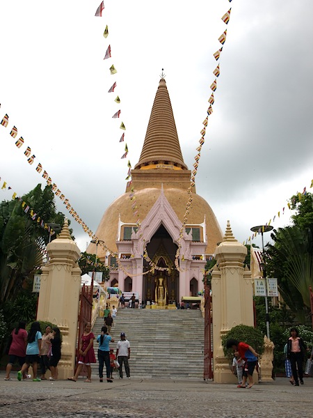 This morning was a big Thai happening Sirilug, Seng and their children took us to the Phra Pathom Chedi (pagoda) which houses the oldest Buddhist structure in Thailand, dating back more than 2000 years. It is said to be the tallest Buddhist monument in the world. Consequently thousands of pilgrims come from all over Asia to pay their respects and ask for help from the Buddhas. The stupa (the high section) stands 127 metres high and dominates the skyline from every direction. It really is a remarkable structure and when you get up close, you realise just how big it is. What we see today is not the first one built on the site. The first was mentioned in 4th century Buddhist scriptures. Over the years stupas here have been built on top of each other with influences from India, Cambodia, China and Thailand.