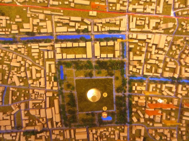 The Phra Pathom Chedi is the golden circle marked 1. The blue line is is a klong.