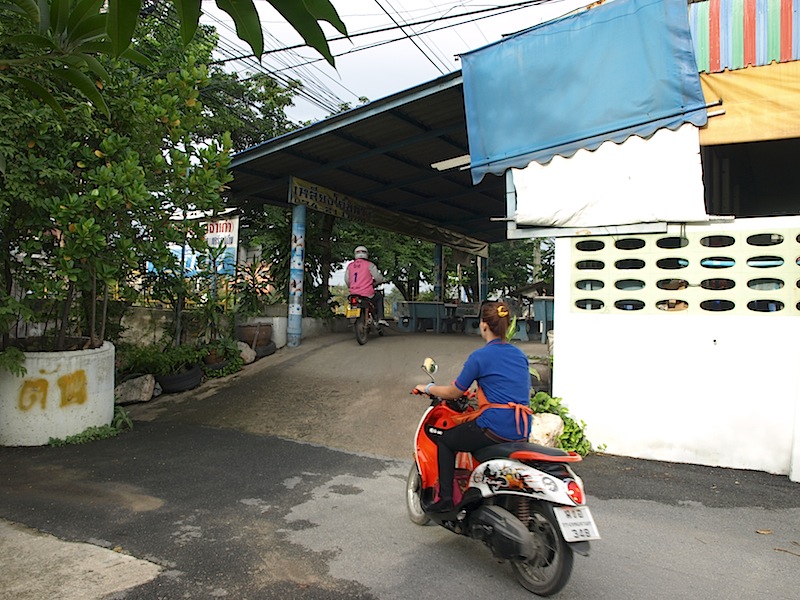 Klongs in Thailand are not particularly pristine waterways as they are polluted with heavy metals and flotsam. Even so, fishermen cast nets into them with the hope of snagging a fish. I watched one bloke drag his net in (he didn’t want to be photographed) and as he did a black sludge rose to the surface. I would definitely not be eating fish from this waterway. Motorbikes zoomed past and disappeared into a café and on investigation they were actually passing by tables. What I love about this country is the lack of OH & S rules to conform to.