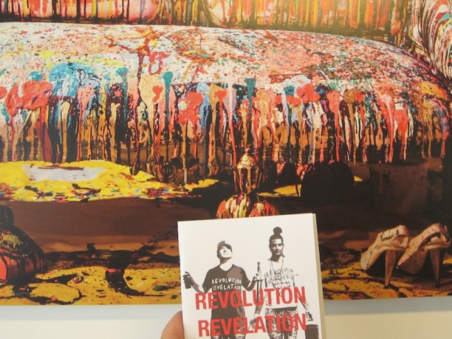 The current exhibition we visited todaybelonged to two of the loved artists of the Music House, Arkın (Mercan Dede) and Carlito Dalceggio. Their colourful and noisy exhibition was entitled “Revolution Revelation” and it was every bit of what the title suggested.