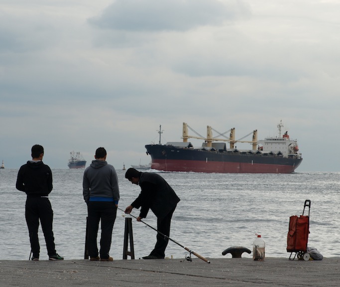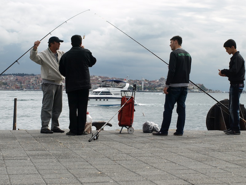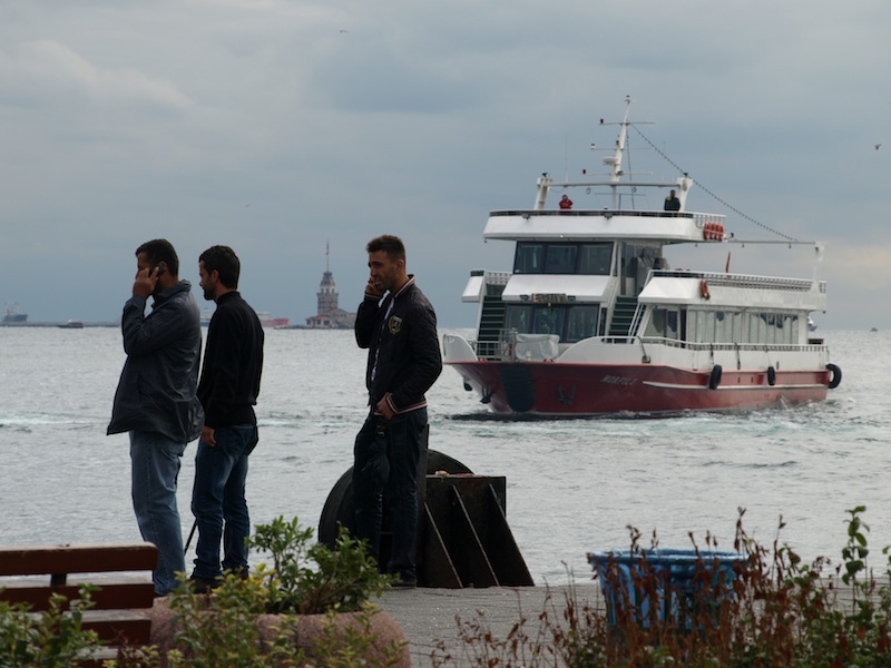 If you don’t fish, you communicate. The tower on the horizon is on an island and is a prominent landmark of the Bosphorus.