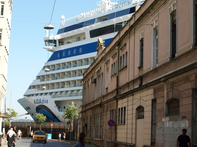 After the promenade we walked into the area where luxury cruise ships berth. They belch thousands of tourists onto the streets. It’s easy to identify the passengers from these ships, they tend to carry nothing, not even a small backpack. Cruise ships stay for only one night.