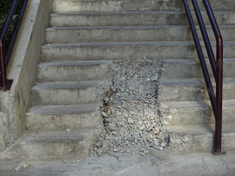 The stairway was a very steep down to the waterfront and on the way down there were some steps where special care was needed. The area had been dug up to access some essential service.