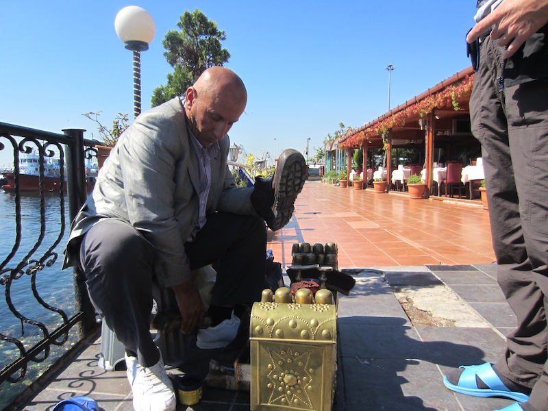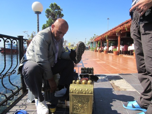 The walk along the foreshore was without the crowds and hassles like in the centre of Istanbul. There were not the usual touts trying to get us to come see the carpets but there were, however, the odd restaurant owner trying to get us into their establishment. And, of course, the inevitable shoe cleaners.