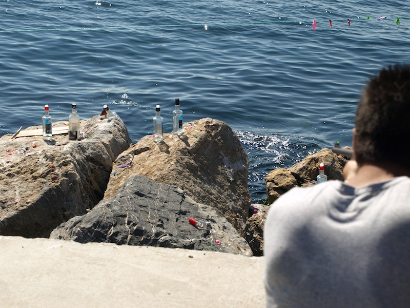 Another pollution activity along the promenade today was the shooting gallery. Shooters tested their ability by shooting at glass bottles and balloons.