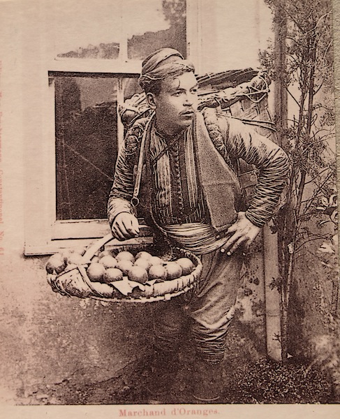 There are two things that I see here. Firstly, the strap over the seller’s shoulder connecting the tray with the basket on his back. Having the two connected means they counterbalance each other. Neat don’t you think? The second point is the casement windows. They must have been popular at the time because in the previous image there are casement windows as well.