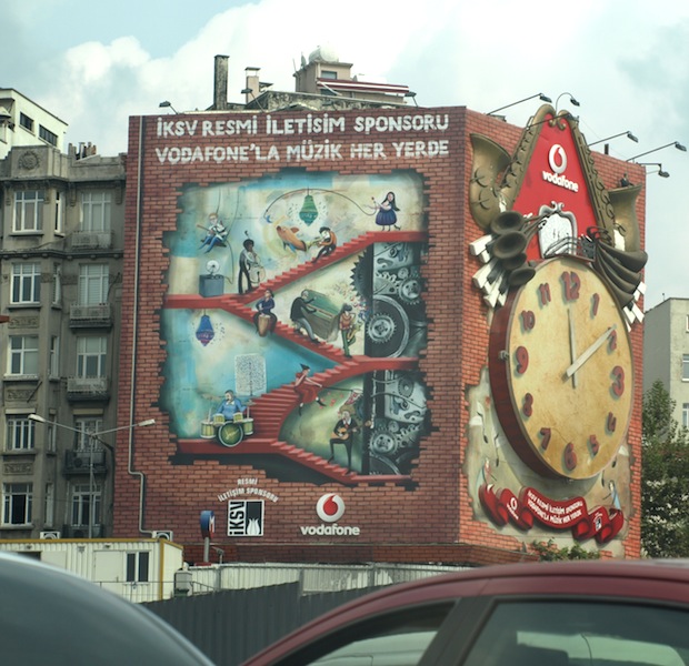 Along the Topkapi side of the park restoration work was being carried out on one of the buildings. Instead of seeing the construction site an image of the building behind the screen was printed onto the protective shade cloth.