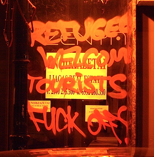 Sometimes the graffiti artist can’t spell but this one got the text mixed up I think. I thought tourists would be welcome as they bring hard currency to the country.
