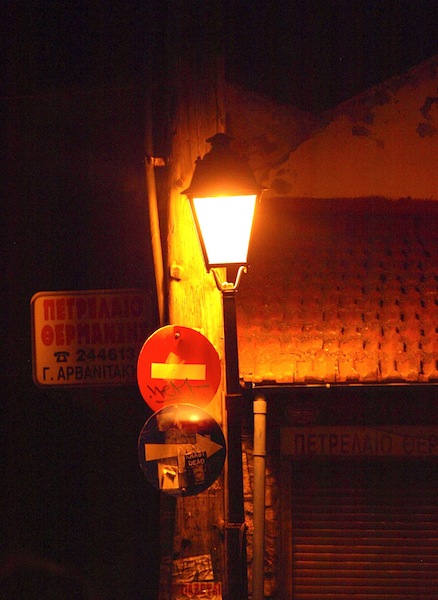 The trek down from the castle through narrow twisting alleyways was surreal. Narrow, sometimes sinister-looking passageways, lead us ever downwards. I doubt if Bev and I would have ventured into the world of alley cats on our own at night. However we felt safe in Litsa’s hands. At times she seemed to be lost but she asked for directions often and even stuck her head in open windows and enquired.