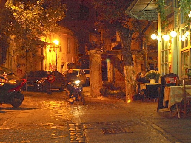 Few people take a walk into the back streets of old Thessaloniki at night but Litsa insisted we check out the nightlife. And so began the trek. By 11.30 I reckon we had done around ten kilometres and it was far from easy going as cobblestone pavements made for difficult walking.