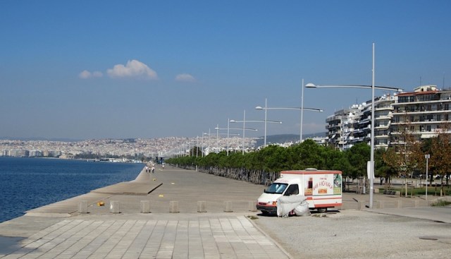 John and Litsa’s apartment is about six kilometres from the centre of Thessaloniki. There is a seaside boulevard from near where they live to the centre but we only walked it once. It was pleasant but we didn’t need to do it more than once so we caught buses to and from the city on subsequent trips.