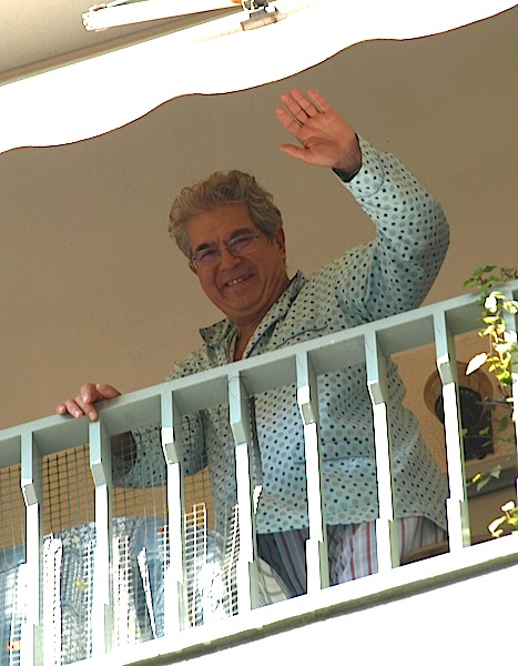This photograph was taken just after lunch on the day we left. You might ask how come he was in his pyjamas. The Greeks, as you probably know, have a siesta after lunch and John takes his seriously! You’ve also probably heard of ‘lounging pyjamas’, a fashion for women in the 1930s. John is keeping the ‘lounging pyjamas’ era alive!