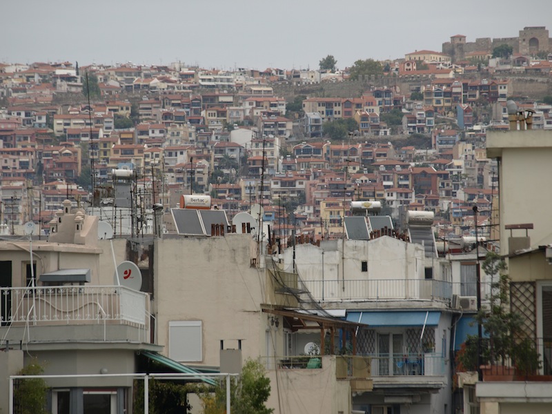 View of Thessaloniki from the top of the White Tower. A long telephoto shot which makes it look as if we are lower than the surrounding buildings.