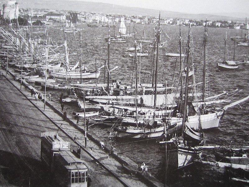Another postcard image along the waterfront. As was the case in Istanbul, it is sometimes hard to find old images of cities and towns. Once I find them I can’t help but buy them for inclusion in this blog. I love B & W images and I appreciate the effort of the photographer considering the size of the cameras and all the associated gear they had to lug around. Have you ever wondered why the subjects never smiled in portrait photographs taken years ago? It’s because the exposures were so long that they were told not to smile as it is difficult to hold a constant smile for any length of time.