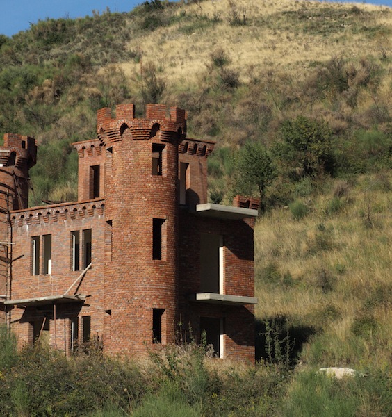 The owner of this house must be worried about an invasion. Or maybe he wants to make his home literally his castle. Very professional brick work in the circular tower.