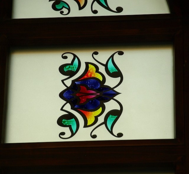 The panel was not leaded glass but sandblasted glass and stained. I’m not sure how the colour was applied but it really was a remarkable piece of artwork.